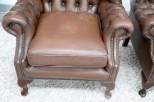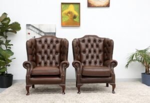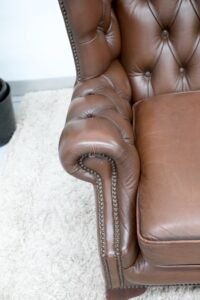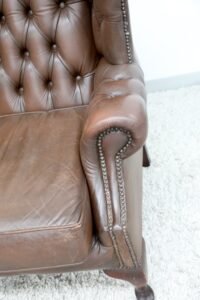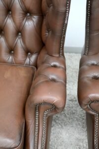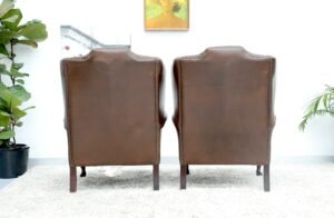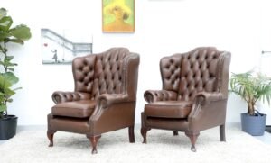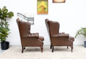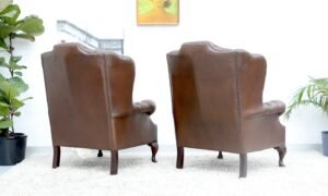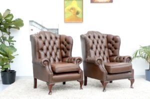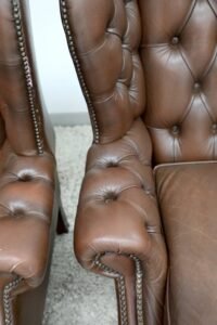 GENUINE LEATHER BROWN CHESTERFIELD WING CHAIRS