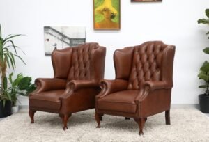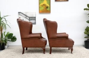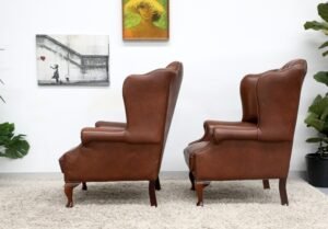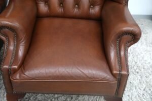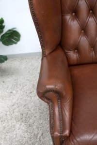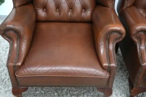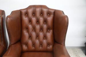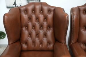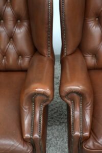 GENUINE LEATHER CHESTERFIELD WING CHAIRS